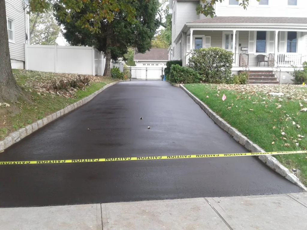 Protect and extend the life of your driveway with professional sealcoating. Our process shields asphalt from weather, water damage, oil stains, and everyday wear while restoring a clean black finish.